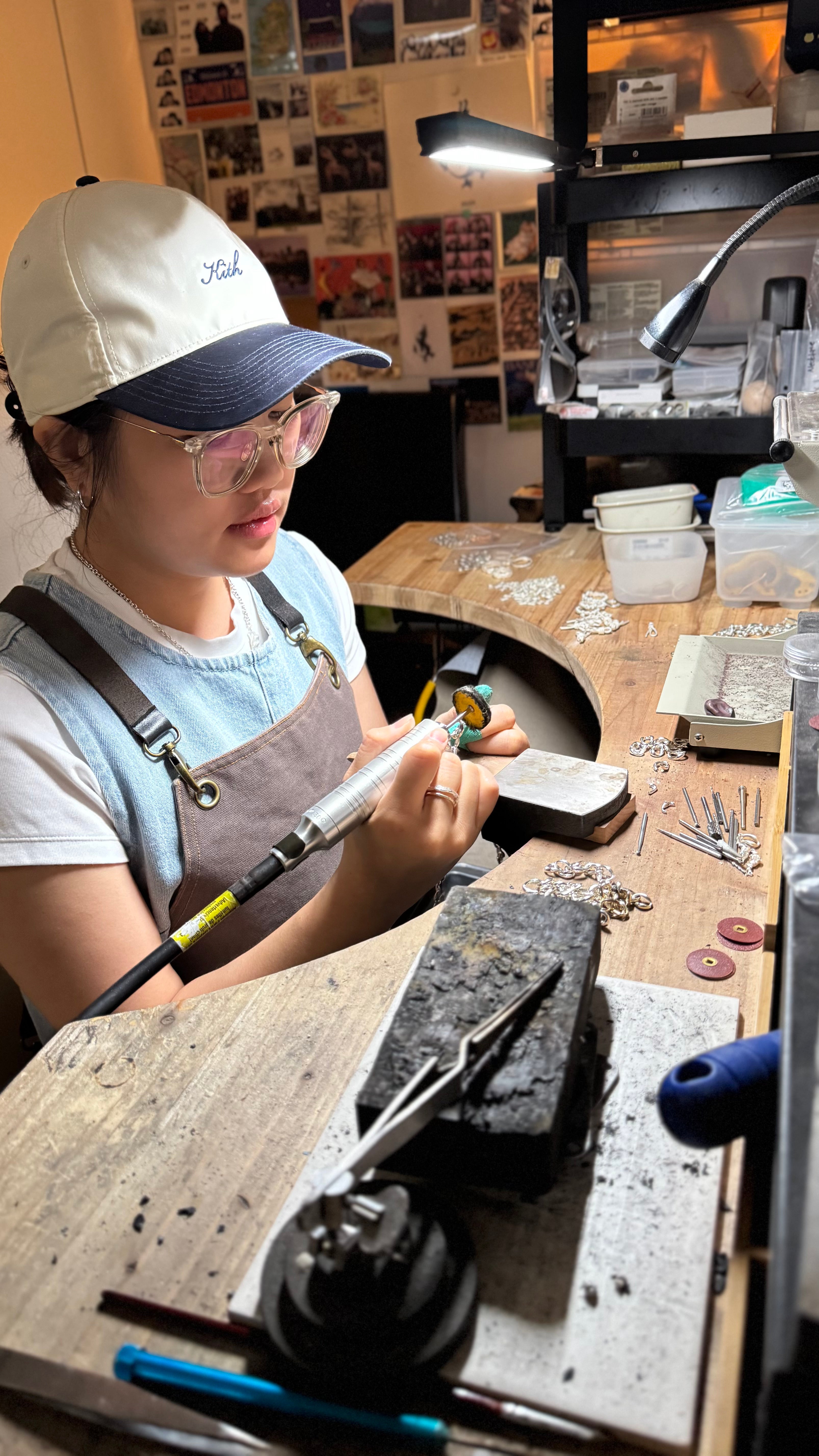 I grew up learning art, exploring various artistic techniques which led my interest into the art world. Originally studying graphic design in Taiwan, I later found my passion in jewellery making. In 2020, I graduated from George Brown College in Toronto with a diploma in Jewellery Arts, combining my skill sets in visual design and practical craftsmanship.
